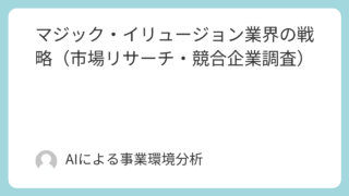 魔法の再定義:2030年に向けた日本イリュージョン・マジック業界の戦略的変革と成長ロードマップ第1章:エグゼクティブサマリー1.1 戦略的背景とレポートの目的本レポートは、日本のマジック・イリュージョン業界における持続可能な事業戦略の策定を...