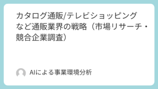 ①情報通信(IT)・メディア カタログ通販/テレビショッピングなど通販業界の戦略(市場リサーチ・競合企業調査) リレーションシップの再点火:データとAIが駆動する次世代通販戦略第1章:エグゼクティブサマリー本レポートは、日本の通販(カタログ・テレビ)業界が直面する複合的な構造課題を分析し、持続可能な成長を実現するための事業戦略を提言することを目的とす... ①情報通信(IT)・メディア