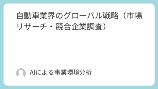②自動車・機械 トラック業界の戦略(市場リサーチ・競合企業調査) 物流クライシスの先へ:AIと電動化が再定義するトラック輸送の未来戦略第1章:エグゼクティブサマリー本レポートの目的と調査範囲本レポートは、日本の経済活動の根幹を支えるトラック業界が直面する、歴史的な転換点における持続可能な成長戦略を策定する... ②自動車・機械