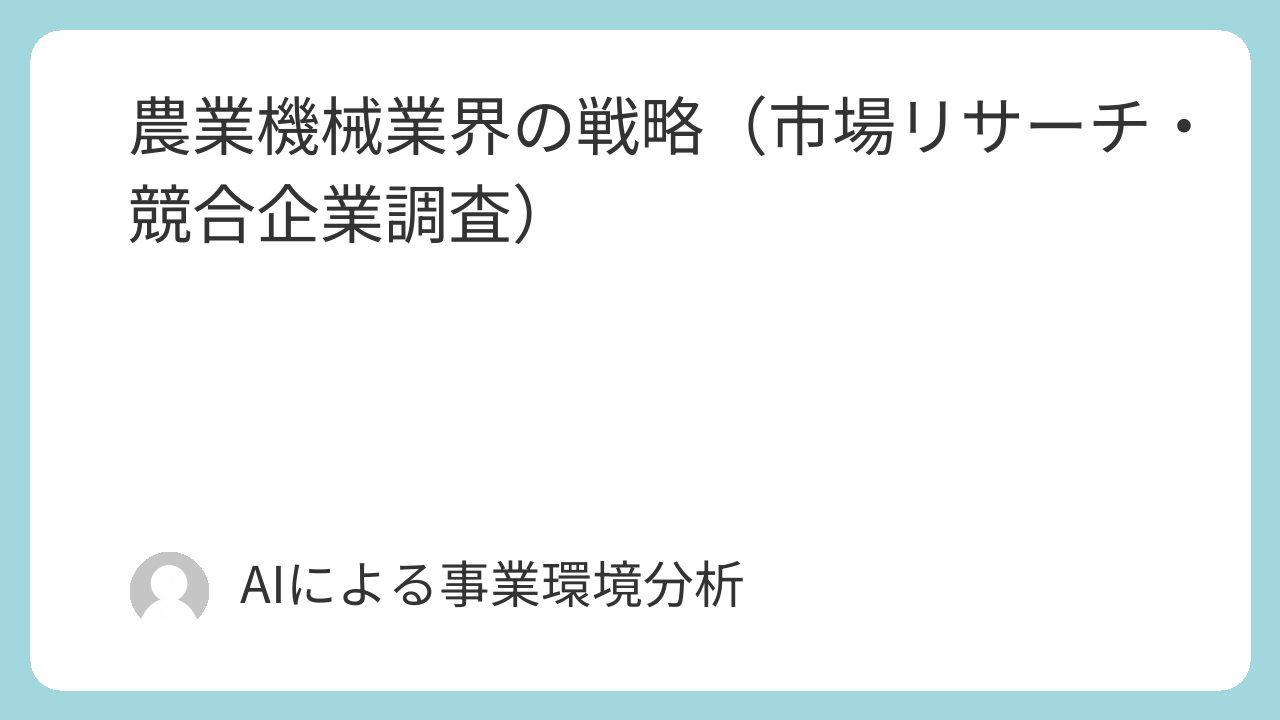 - 総合的な農業機械メーカーとしての参入: 巨額の設備投資、世界規模での販売・サービスディーラー網の構築、そして長年の信頼によって培われるブランドイメージなど、参入障壁は極めて高いと言えます。