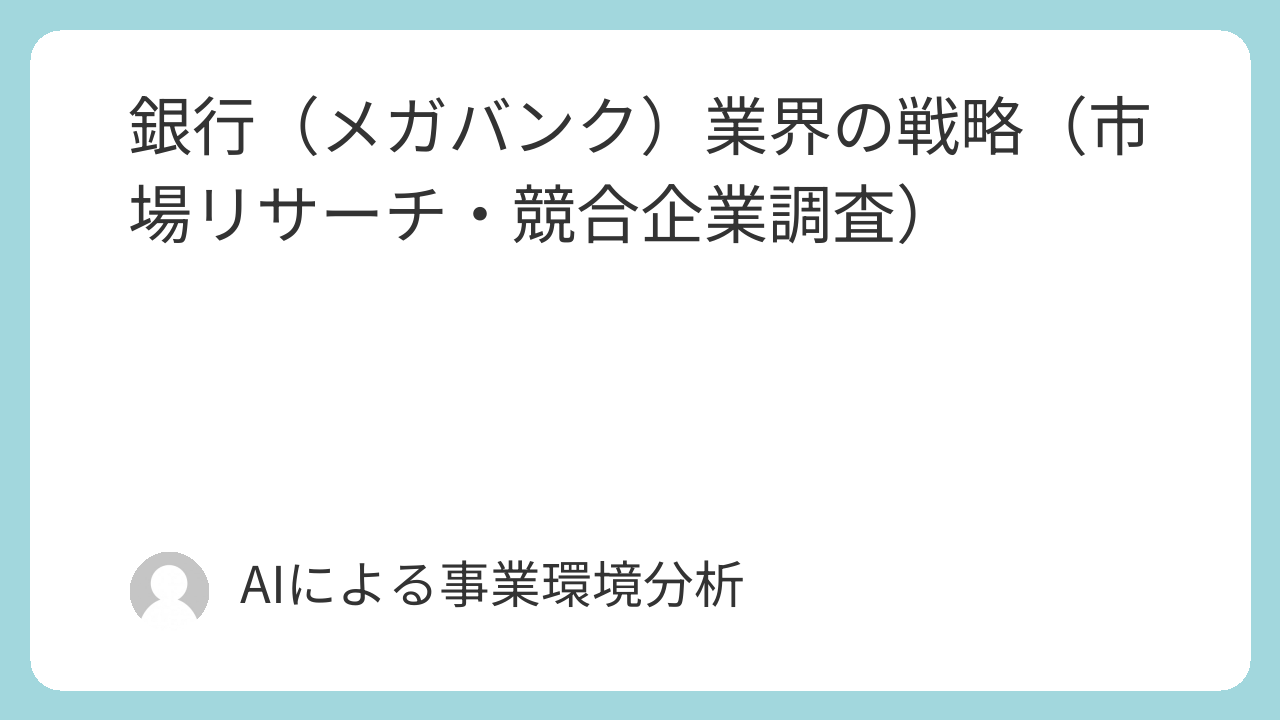 本レポートは、日本のメガバンクが直面する構造的課題、すなわち長引く低金利環境による収益圧迫、デジタルディスラプター(FinTech、巨大IT企業)の台頭、レガシーシステムの足枷、そして顧客行動の根本的な変化という多層的な課題を乗り越え、持続可能な成長を実現するための事業戦略策定を目的とする。調査対象は、三菱UFJフィナンシャル・グループ、三井住友フィナンシャルグループ、みずほフィナンシャルグループの3メガバンクグループを中核とし、その競合となる主要なネット銀行(楽天銀行、SBI新生銀行、PayPay銀行)、金融事業を強化する異業種プレイヤー(NTTドコモ、KDDI等)、及びFinTech企業である。