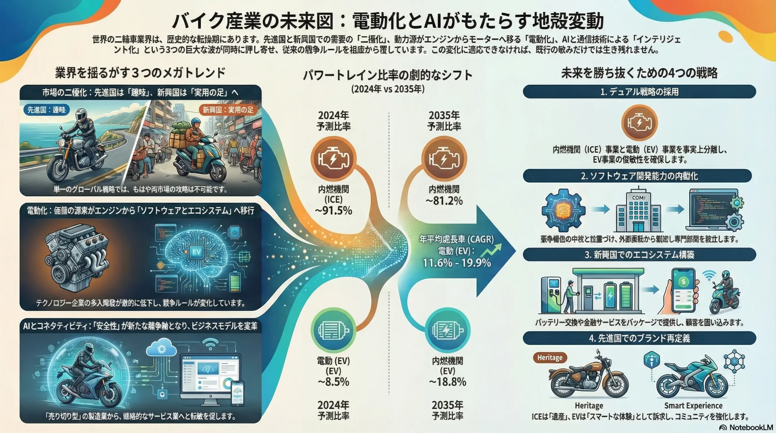 内燃機関の終焉か、復権か:電動化とAIが拓く二輪車産業の新航路
