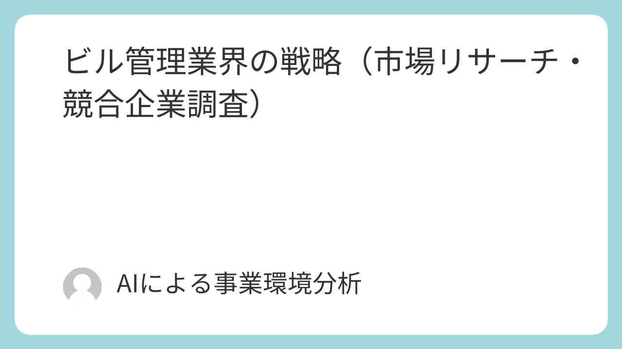 - 新規需要の停滞: ビルの新規着工が頭打ちとなる中、既存ビルをめぐる企業間競争が激化し、価格競争を助長している 5。