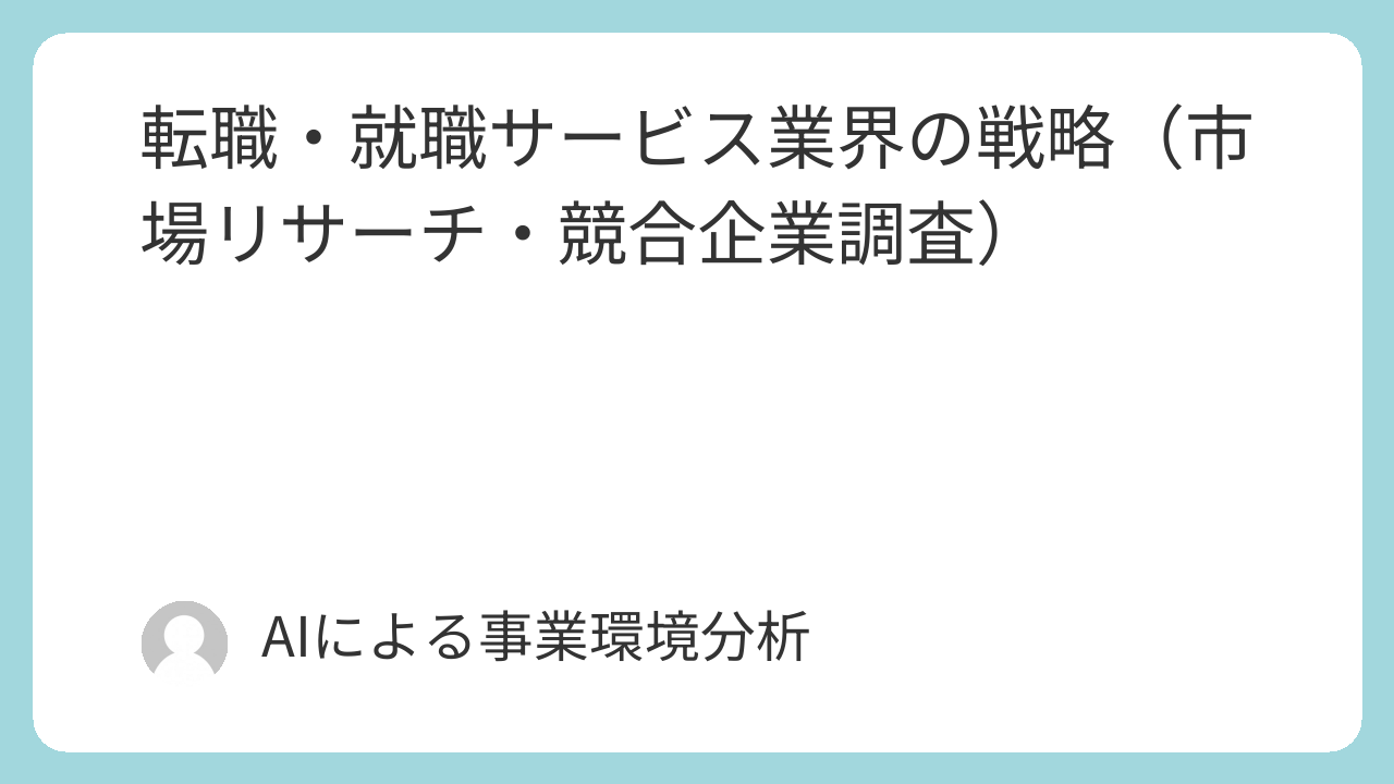 本レポートは、日本の転職・就職サービス業界が直面する三つの根源的な地殻変動、すなわち①終身雇用からジョブ型雇用への移行に伴う労働市場の流動化、②AIによるマッチング・スカウト業務の破壊的革新、③ギグエコノミーや副業といった働き方の多様化、を多角的に分析し、経営層が次世代の事業戦略を策定するための羅針盤となることを目的とする。