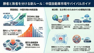 自動車・機械 中国の自動車業界の戦略(市場リサーチ・競合企業調査) 中国市場は、次世代モビリティのビジネスモデル、先進技術、そして顧客体験が定義される「世界最先端の実験場」へとその姿を変えた。中国ブランドの市場シェアは2024年に60.5%へと急拡大している。 自動車・機械