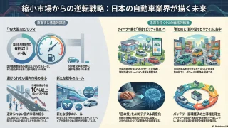 自動車・機械 日本国内における自動車業界の戦略(市場リサーチ・競合企業調査) 日本の自動車業界は、HVが6割を占めBEV普及率1-2%台に留まり、国内市場の構造的縮小に直面。MaaS市場とAIがひとつの機会となる。 自動車・機械