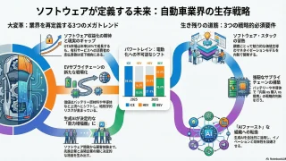 自動車・機械 自動車業界のグローバル戦略(市場リサーチ・競合企業調査) 自動車業界はSDV化、EV再構築、生成AIによる過去100年で最も深刻な構造変革の渦中にある。勝ち残るには、ソフトウェア能力内製化、垂直統合、AIファーストなオペレーティングモデルの導入が不可欠となる。 自動車・機械