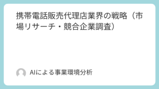 ①情報通信(IT)・メディア 携帯電話販売代理店業界の戦略(市場リサーチ・競合企業調査) 岐路に立つ通信リテール:キャリア依存からの脱却と「体験価値」で再定義する販売代理店の生存戦略第1章:エグゼゼクティブサマリー本レポートの目的と調査範囲本レポートは、通信キャリアによる直販(オンライン)強化と政府による継続的な規制強化という、... ①情報通信(IT)・メディア