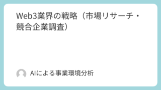 ①情報通信(IT)・メディア Web3業界の戦略(市場リサーチ・競合企業調査) 分散化のその先へ:トークノミクスとAIが再定義するWeb3経済圏の覇権戦略第1章:エグゼクティブサマリー本レポートの目的と調査範囲の要約本レポートは、技術的進化、市場構造、競争環境、および規制動向が複雑に交錯するWeb3業界を包括的に分析し... ①情報通信(IT)・メディア