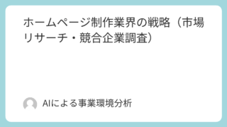 ①情報通信(IT)・メディア ホームページ制作業界の戦略(市場リサーチ・競合企業調査) 日本のホームページ制作業界における事業戦略再構築:成長とレジリエンスに向けた2025年の設計図エグゼクティブサマリー日本のホームページ制作業界は、重大な変曲点を迎えている。市場規模は拡大を続ける一方で、その内部構造は根本的な変容を遂げつつあ... ①情報通信(IT)・メディア