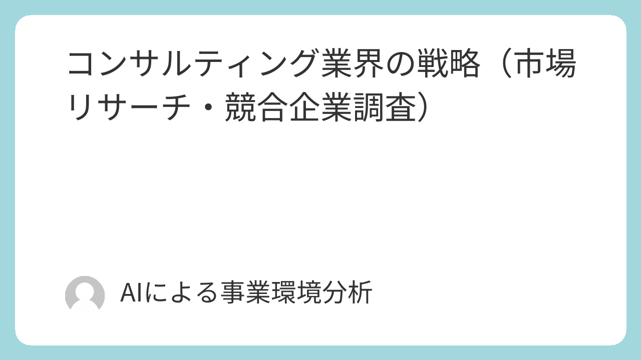 本レポートは、コンサルティング業界が直面する三重の構造変革、すなわち①生成AIの台頭による知的生産プロセスの根底的な変化、②クライアントニーズの高度化・複雑化(単なる戦略策定から実行・成果創出への要求シフト)、そして③IT企業や専門ブティックファームとの異次元の競争激化、という課題に対応し、持続可能な成長を実現するための事業戦略を提言することを目的とする。調査対象は、戦略、総合(IT含む)、人事、財務アドバイザリー等の主要コンサルティングサービスとする。