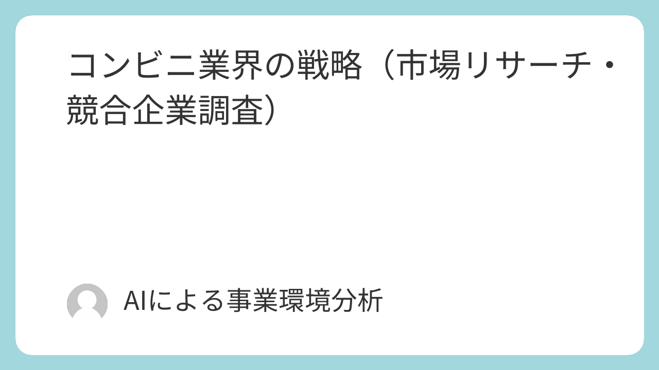 以上のPESTLE分析から、コンビニ業界は、コスト増につながる政治・経済的圧力と、新たな需要を創出する社会的・技術的変化という、相反する力に同時に晒されていることがわかる。特に、高齢化や単身化といった社会的な需要と、AIや自動化といった技術的な解決策が交差する領域に、業界の未来を切り拓く大きな事業機会が存在している。これらの外部環境の変化を脅威として受け止めるか、機会として捉え、戦略的に活用できるかが、今後の企業の盛衰を決定づけるだろう。