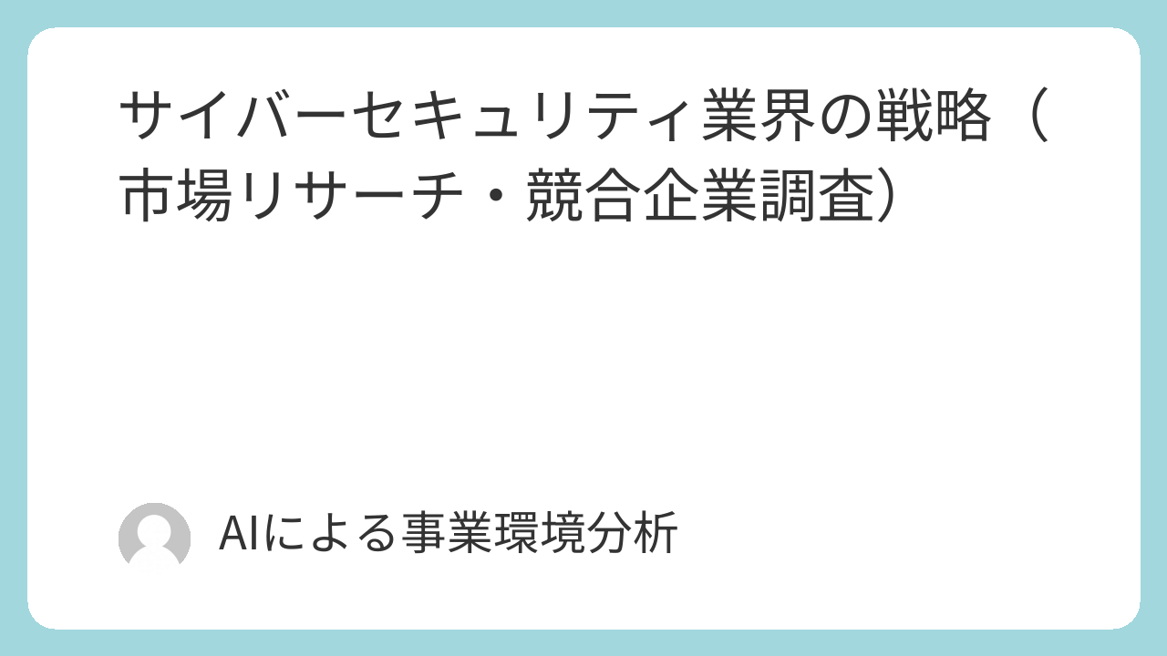 本レポートは、経営陣がサイバーセキュリティ市場への新規参入または既存事業の大幅な拡大に関する戦略的意思決定を行うことを目的とし、包括的な市場分析と実行可能な戦略的提言を提供するものです。市場の構造、成長性、競争環境、そして将来のパラダイムシフトを解き明かし、持続的な競争優位性を確立するための具体的な事業機会を特定・評価します。