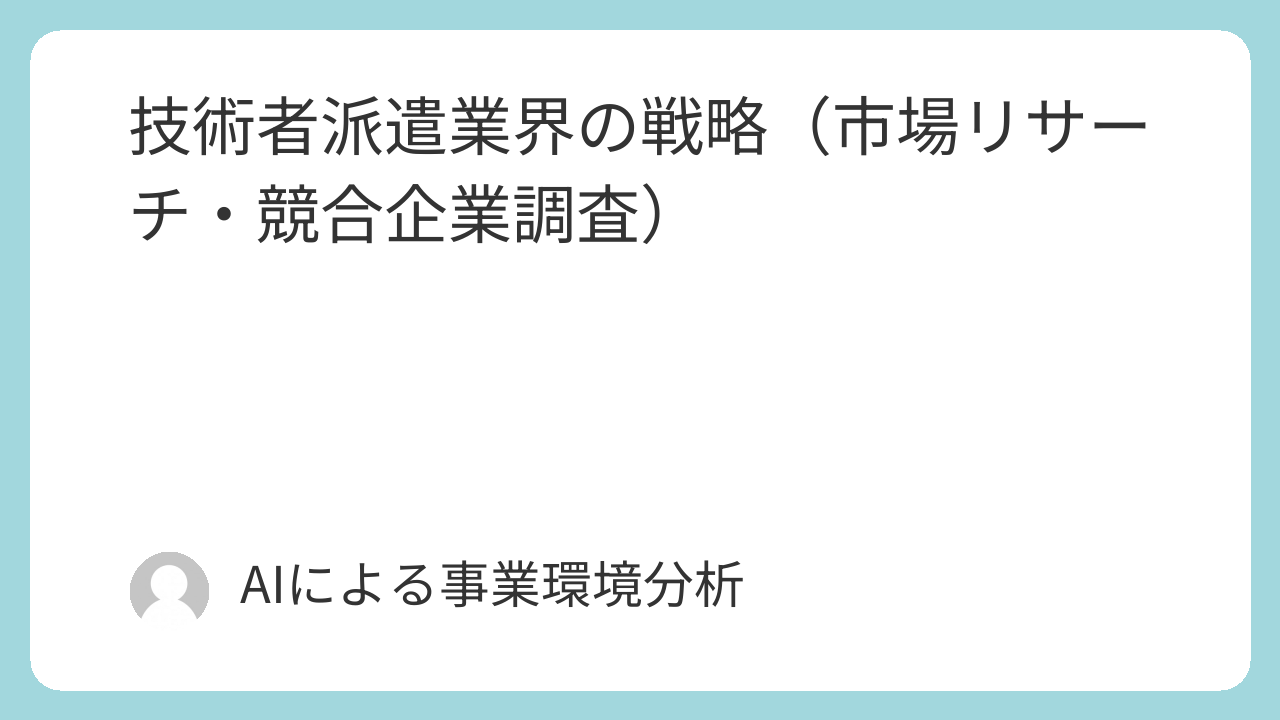 - 労働人口の減少と人材獲得競争の激化: 少子高齢化による生産年齢人口の減少は、技術者供給の絶対量を制約する根本的な課題である。これにより、派遣会社間の人材獲得競争は激化の一途をたどっている 17。