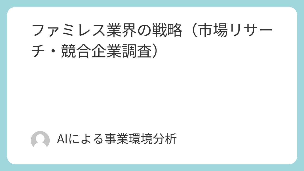 本レポートは、日本のファミリーレストラン(以下、ファミレス)業界が直面する、深刻な人手不足、原材料費・エネルギー価格の高騰、消費者のライフスタイルと価値観の急速な変化、そしてデジタルトランスフォーメーション(DX)の波という複合的な構造課題を多角的に分析し、持続可能な成長を実現するための事業戦略を提言することを目的とする。調査対象は、総合型および専門型のファミレスチェーンに加え、そのエコシステムを構成する食品卸、厨房機器、デリバリープラットフォームといった関連業界までを範囲に含む。