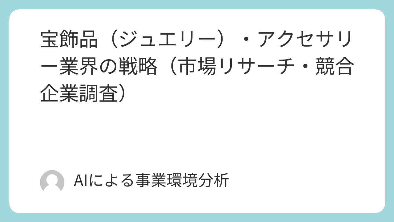 宝飾品(ジュエリー)・アクセサリー業界の戦略(市場リサーチ・競合企業調査)