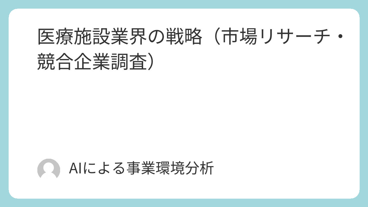 - 患者・人材獲得競争: 同一医療圏内における病院・クリニック間での患者獲得競争は常に存在する。それに加え、前述の通り、医師や看護師といった希少な人材の獲得競争も熾烈を極めている。