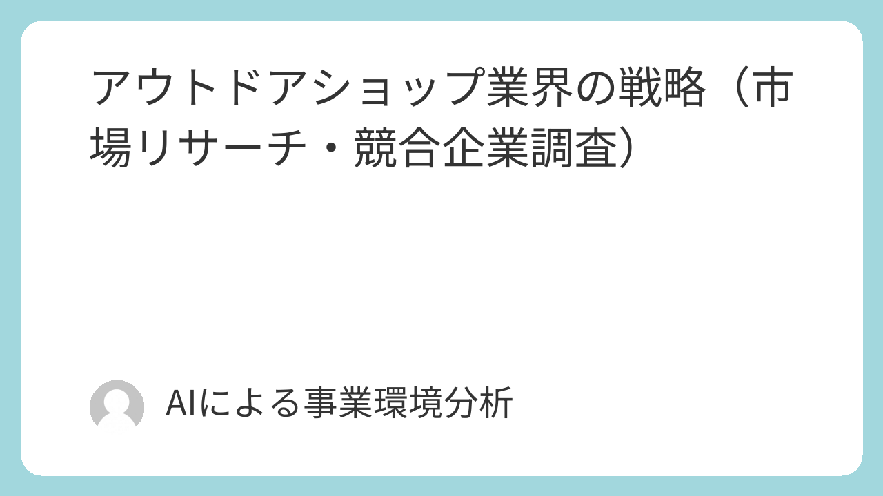 本レポートは、日本のアウトドアショップ業界が直面する多層的かつ急速な構造変化、すなわち①コロナ禍による一時的なブームの沈静化、②「モノ消費」から「コト(体験)・イミ(持続可能性)」消費への顧客価値観の根本的シフト、③有力メーカーによるD2C強化と異業種からの破壊的参入、④AIによる顧客体験とオペレーションの変革、を深く分析し、持続可能な成長を遂げるための事業戦略を提言することを目的とする。