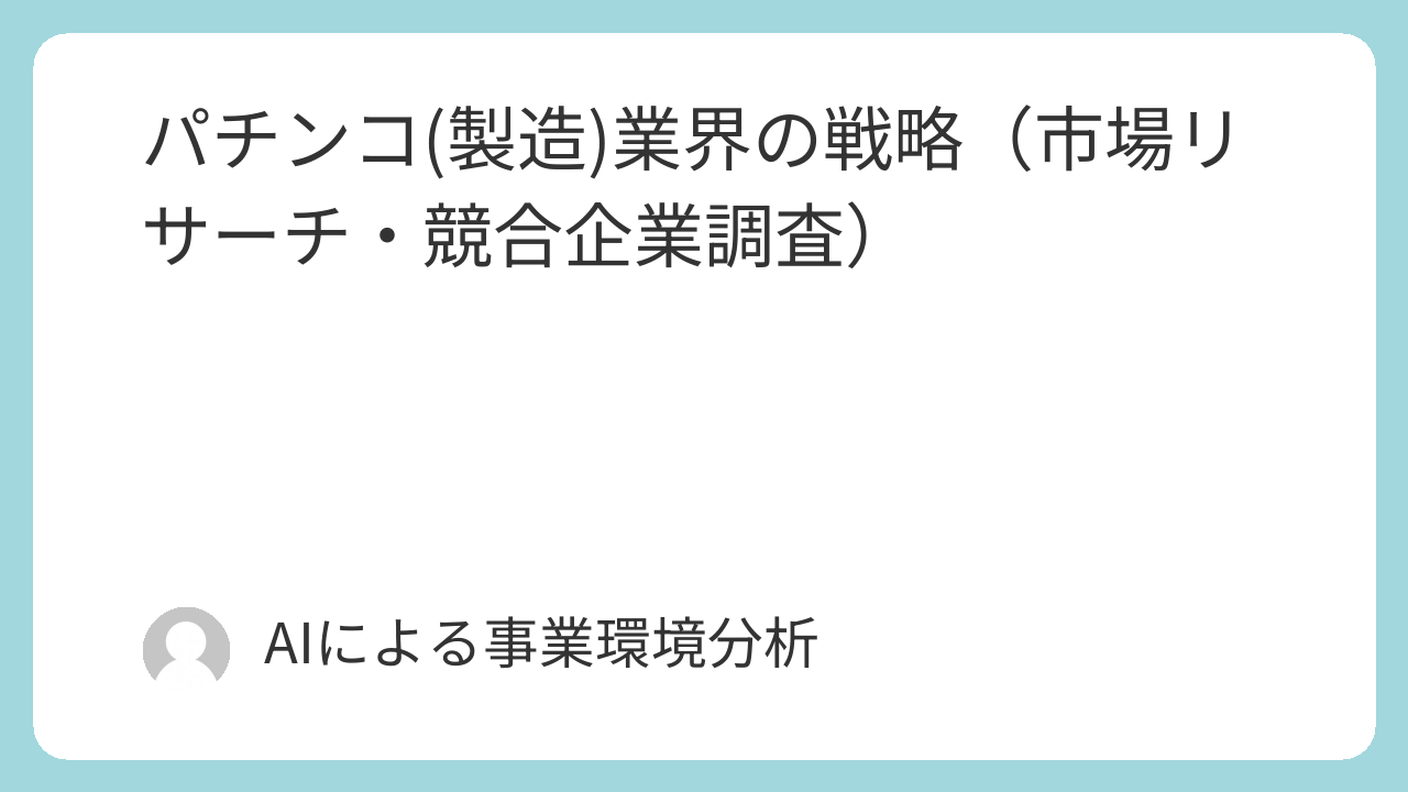 - 未来: スマート遊技機とデータ活用の時代において、新たな価値の源泉が生まれつつある。それは「アフターサポート」の領域を超えた、稼働データを分析し、ホール経営を支援するサービス提供である。これにより、遊技機を販売して終わり(フロービジネス)ではなく、販売後も継続的に価値を提供し続けるストックビジネスへの転換が可能となる。