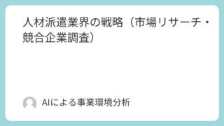 脱・労働力仲介:スキルとデータが駆動する次世代人材エコシステムの構築戦略第1章:エグゼクティブサマリー本レポートは、日本の人材派遣業界が直面する構造的な地殻変動を多角的に分析し、この変革期において持続的な競争優位を確立し、成長を達成するため...
