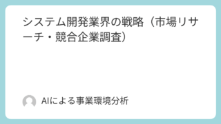 ①情報通信(IT)・メディア システム開発業界の戦略(市場リサーチ・競合企業調査) システム開発業界の構造変革と次世代の覇者:AI時代のSIer生存戦略第1章:エグゼクティブサマリー1.1. 本レポートの目的と調査範囲本レポートは、日本のシステム開発業界が直面する構造的な地殻変動を多角的に分析し、今後3~5年における持続的... ①情報通信(IT)・メディア