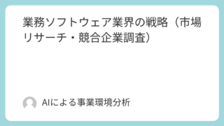①情報通信(IT)・メディア 業務ソフトウェア業界の戦略(市場リサーチ・競合企業調査) 業務ソフトウェア業界のパラダイムシフト:AIによる自律化とコンポーザブル時代における勝者の条件第1章:エグゼゼクティブサマリー本レポートの目的と調査範囲本レポートは、業務ソフトウェア業界が直面する構造的なパラダイムシフトを多角的に分析し、経... ①情報通信(IT)・メディア