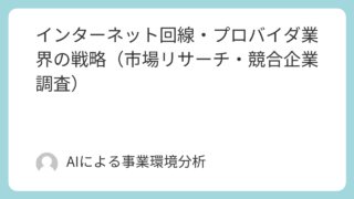①情報通信(IT)・メディア インターネット回線・プロバイダ業界の戦略(市場リサーチ・競合企業調査) ポスト・ブロードバンド時代の覇権争い:インフラとAIが再定義する通信事業者の生存戦略第1章:エグゼクティブサマリー本レポートの目的と調査範囲本レポートは、日本のインターネット回線・プロバイダ業界が直面する構造的変化を分析し、経営層が次期事業... ①情報通信(IT)・メディア