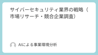 ①情報通信(IT)・メディア サイバーセキュリティ業界の戦略(市場リサーチ・競合企業調査) サイバーセキュリティ市場への参入および事業拡大に関する戦略的機会の分析と提言エグゼクティブサマリー本レポートの目的と調査範囲本レポートは、経営陣がサイバーセキュリティ市場への新規参入または既存事業の大幅な拡大に関する戦略的意思決定を行うこと... ①情報通信(IT)・メディア