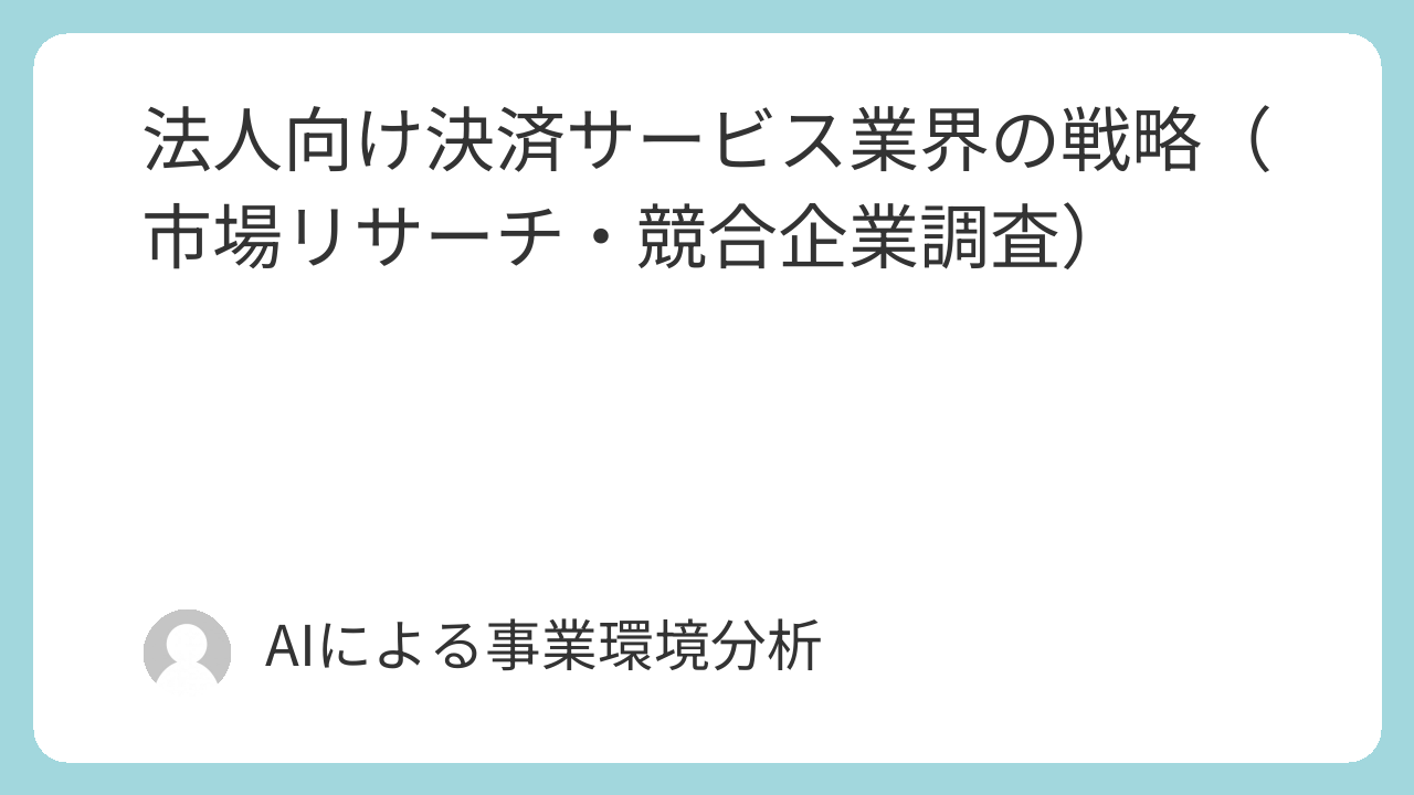 本レポートは、企業のデジタルトランスフォーメーション(DX)化の波と、インボイス制度や電子帳簿保存法といった抜本的な法制度変更を背景に、歴史的な変革期を迎えている日本の「法人向け決済サービス」業界における持続的な競争優位を確立するための事業戦略を提言することを目的とする。