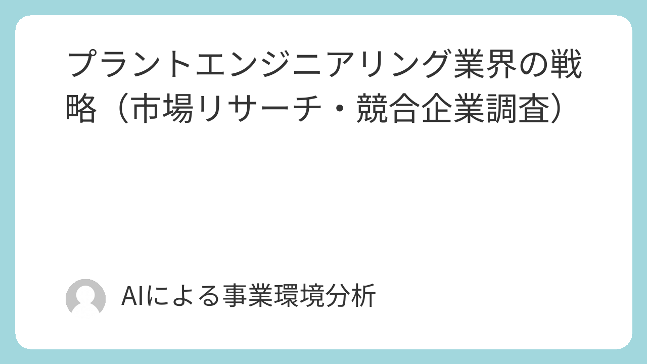 本レポートは、プラントエンジニアリング業界が直面する歴史的なパラダイムシフトを分析し、この変革期において持続可能な成長を達成するための事業戦略を提言することを目的とする。当業界は現在、