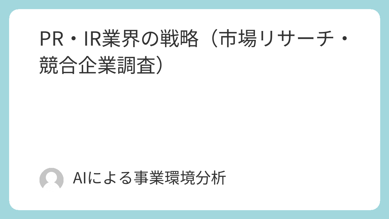 本レポートは、PR(パブリックリレーションズ)・IR(インベスターリレーションズ)業界が直面する構造的かつ不可逆的な地殻変動を分析し、今後3~5年の事業戦略を策定するための羅針盤を提供することを目的としています。当業界は、