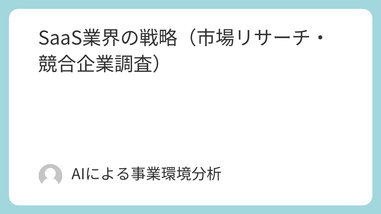 本レポートは、Software as a Service(SaaS)業界が直面している構造的な地殻変動を多角的に分析し、今後3~5年で持続的な成長を達成するための事業戦略の基盤を提供することを目的とする。調査範囲は、世界のSaaS市場の概観、外部環境、競争構造、顧客需要、業界内部の動向、そして人工知能(AI)がもたらす根源的な変化にまで及ぶ。本分析は、経営層が次なる成長戦略を策定する上で、データに基づいた客観的な意思決定を行うための戦略的資産となることを目指す。