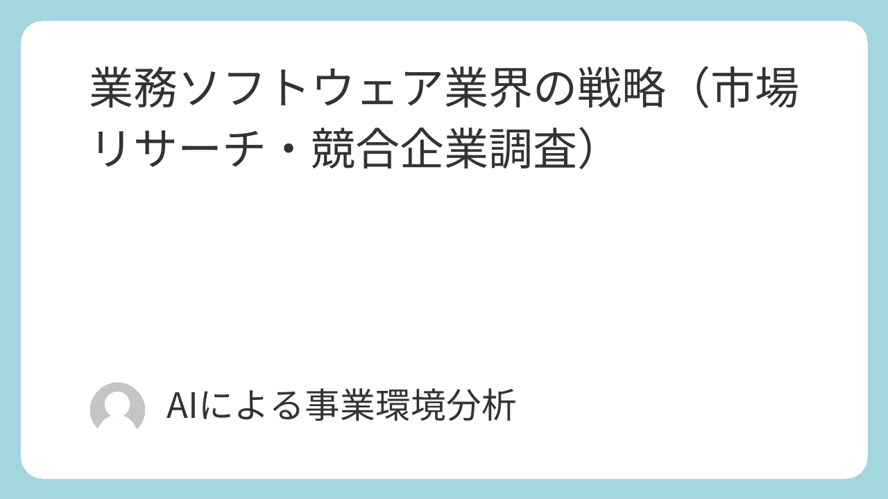 本レポートは、業務ソフトウェア業界が直面する構造的なパラダイムシフトを多角的に分析し、経営層が次世代の事業戦略を策定するための羅針盤となることを目的としています。調査範囲は、世界の業務ソフトウェア市場全体を俯瞰しつつ、特に日本市場の特性に焦点を当てています。分析の核心には、生成AIによる業務プロセスの自律化と、クラウドネイティブ化がもたらすアーキテクチャの変革(コンポーザブルERPなど)という、業界の未来を決定づける二つのメガトレンドを据えています。本レポートは、単なる市場データの羅列に留まらず、各分析が事業戦略に対していかなる意味を持つのか(So What?)を常に問い、具体的かつ実行可能な戦略提言へと繋げることを目指します。
