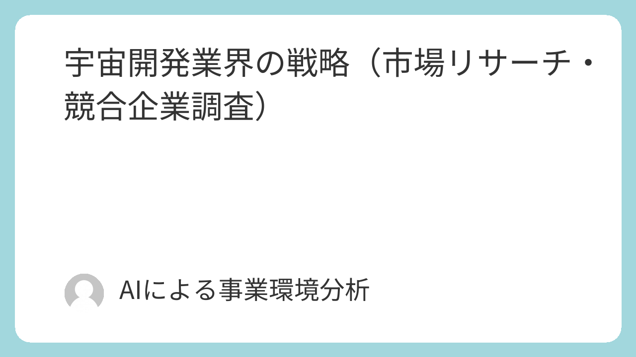 | 政府予算の動向: 安全保障や地政学的競争を背景に、各国政府の宇宙開発予算(特に防衛分野)は増加傾向にある 1。 | サプライチェーンの脆弱性: 特定の部品(例:半導体)や素材の供給が地政学リスクに晒されている 19。 |