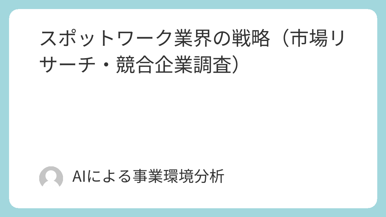 - 安全性とトラブルのリスク: 企業側は情報漏洩リスクを懸念し 19、ワーカー側は「求人情報と実際の仕事内容の相違」や「現場での不十分な指示・教育」といったトラブルを経験している 12。プラットフォーム上での安全性と信頼性の確保は、持続的な成長のための必須条件である 1。
