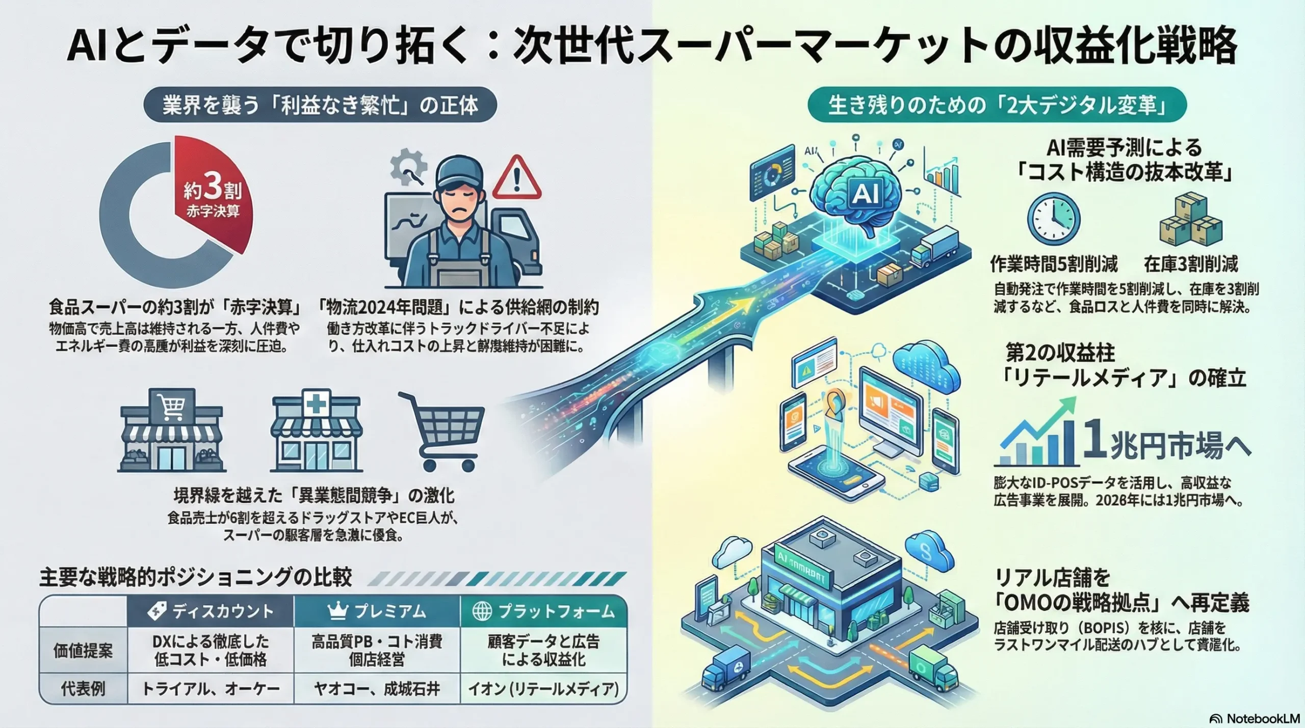 ラストワンマイルの覇者:AIとデータが駆動する次世代スーパーマーケットの収益化戦略