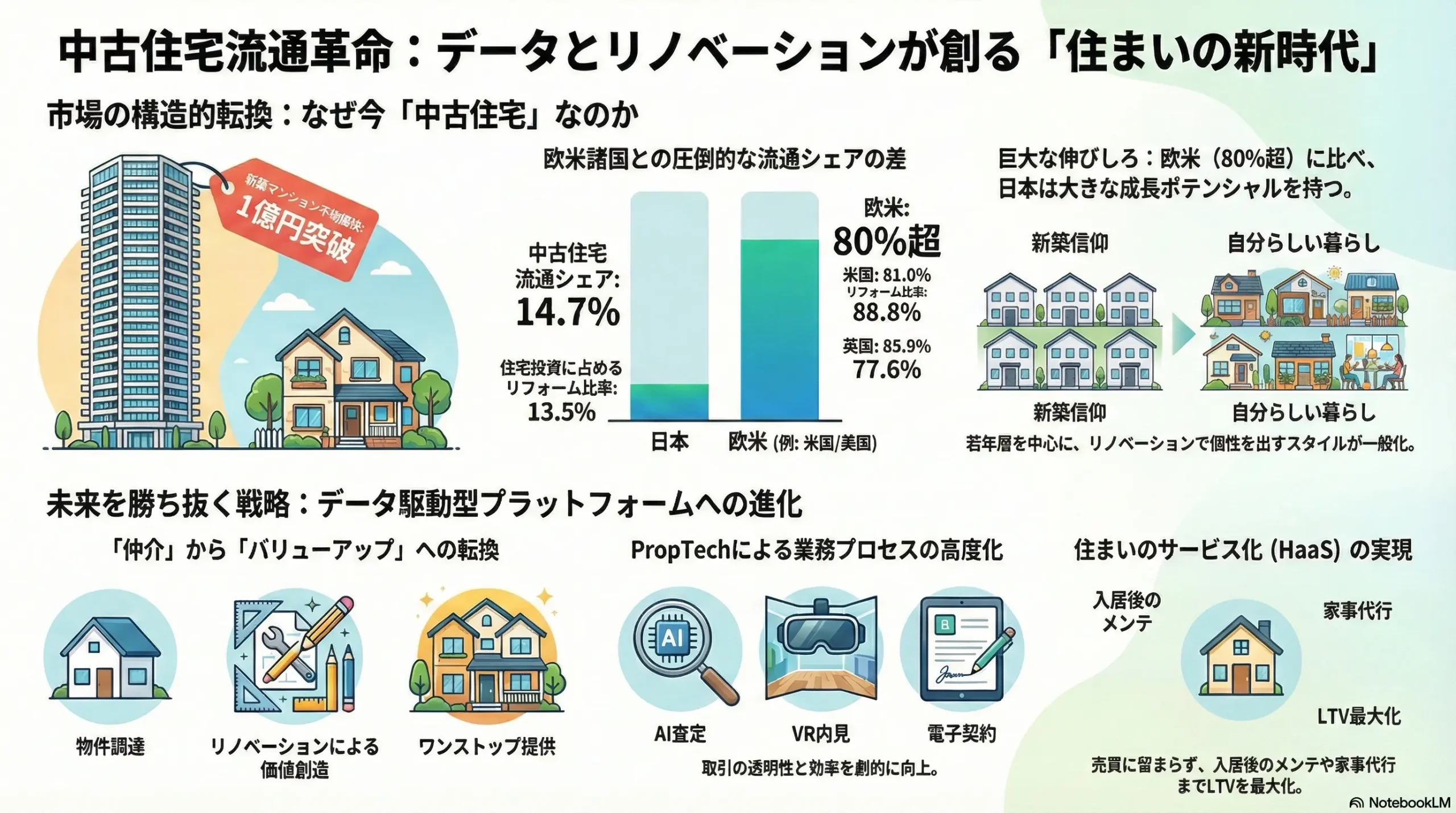 ストック型社会への転換:データとテクノロジーが駆動する中古住宅流通革命と未来の住まい方