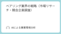 - IT企業: AIやデータ分析に強みを持つIT企業(例:Google, Microsoft, Amazon Web Services)が、データプラットフォームや最適化アルゴリズムの提供者として参入し、業界の付加価値の源泉を奪う可能性があります。
