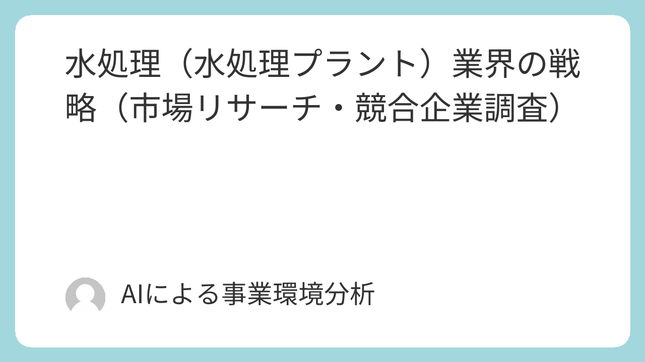 水処理業界の主要プレイヤーは、それぞれ異なるビジョンと戦略に基づき、激しい競争を繰り広げています。各社の戦略、強み、弱みを比較分析することで、業界の競争力学と自社の戦略的ポジショニングを明確にすることができます。